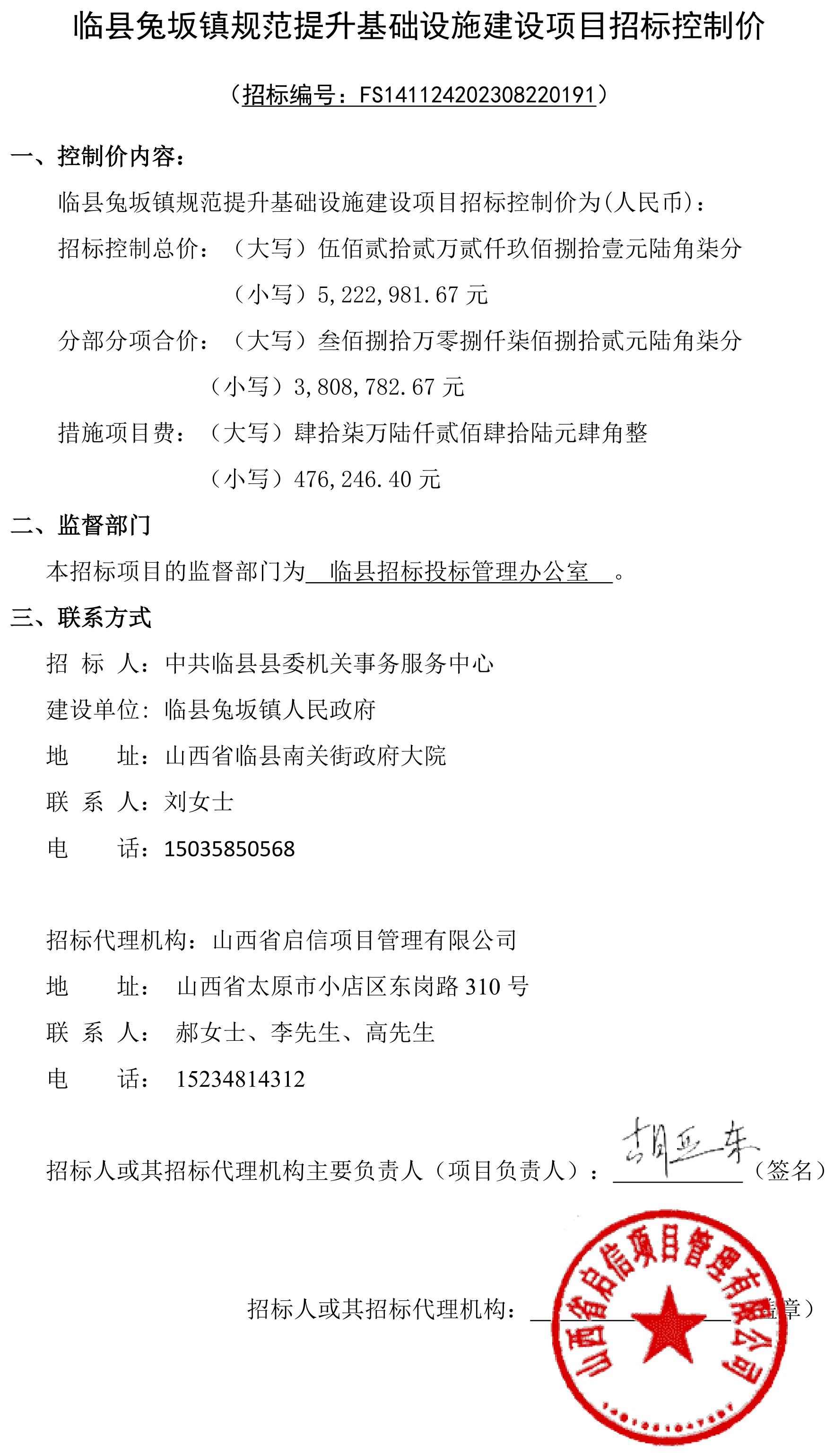 临县兔坂镇规范提升基础设施建设项目施工招标控制价